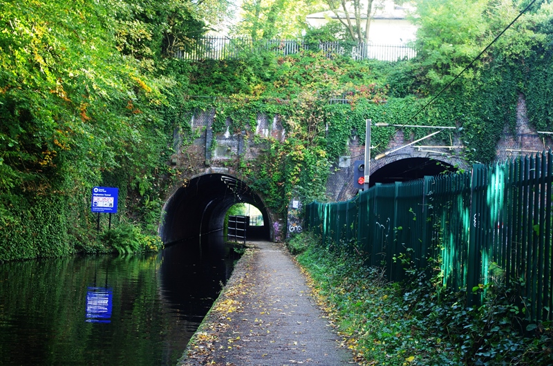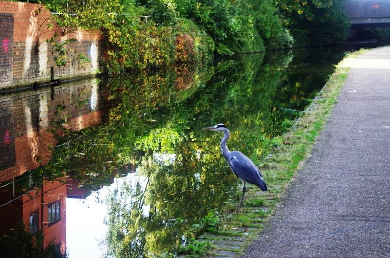 To the left the canal turns left to join the Grand Union. The Mailbox building is at the corner. To the right is the start of the towpath going south. The Heron seemed undisturbed by people walking past! The canal runs alongside the railway for about 3 miles. There’s a short tunnel at Edgbaston then the canal passes the University campus.