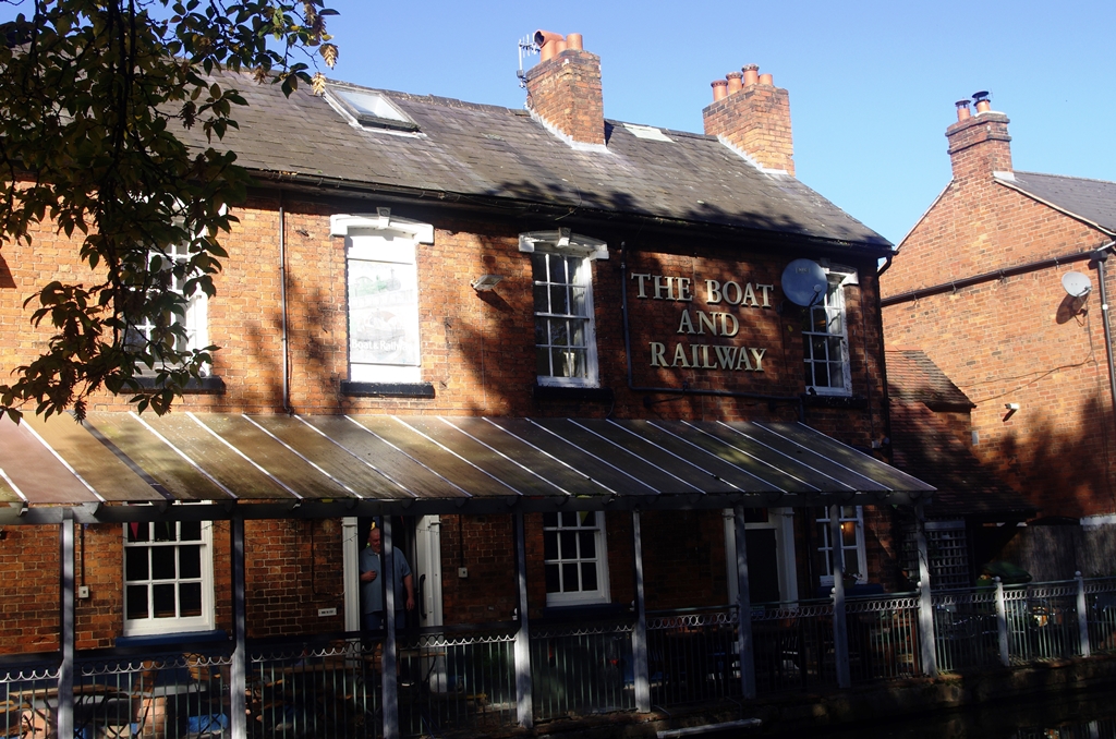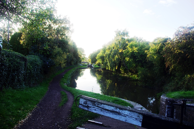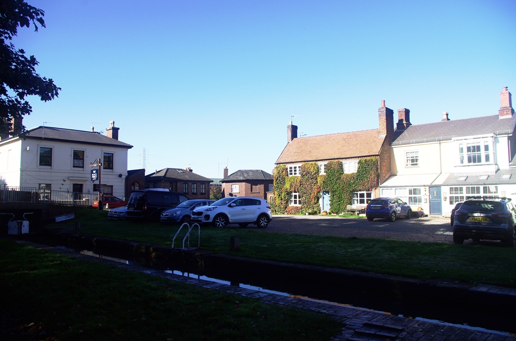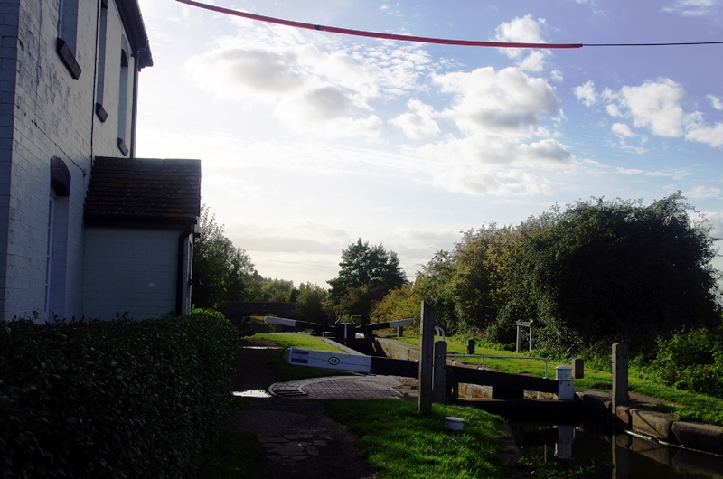 The bottom of the flight was marked by the Queen’s Head pub at Stoke Pound. Another series of six locks took me past Stoke Prior village and wharf. The Boat and Railway Inn is named because it’s between the canal and the railway line.