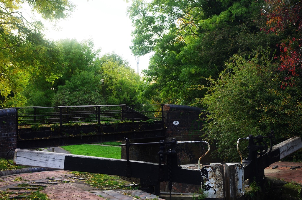 There are 30 locks in total in the flight and a reservoir before bridge 54. I left the canal after 18 locks (at bridge 51) to walk down a lane and across the fields to Bromsgrove Station for a train back to Birmingham.