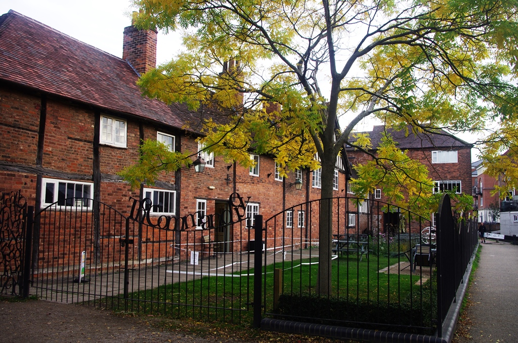 After the railway bridge, which links the two Worcester stations, is the short Lowesmoor Basin. The towpath returns to the left bank at Mother Hubbard’s fish and chip restaurant.